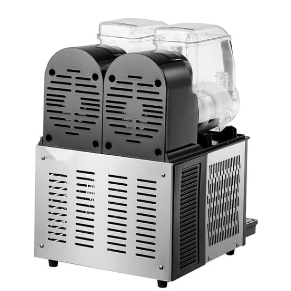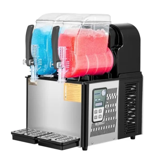 Denna uppgraderade slushmaskin är perfekt för att göra olika drycker med sin justerbara temperaturkontroll. Med 15 olika nivåer (temperaturområde: -11 ~ 5 ℃ / 12,2 ~ 33,8 ℉) kan du skapa den perfekta mjukheten eller hårdheten för dina drycker. Använd 1-2 nivåer för juicedrycker, 3-7 för slushies och 8-13 för Margaritas. De två 4L tankarna kan producera upp till 32 koppar per sats och passar perfekt i glassbutiker, kaféer och barer.