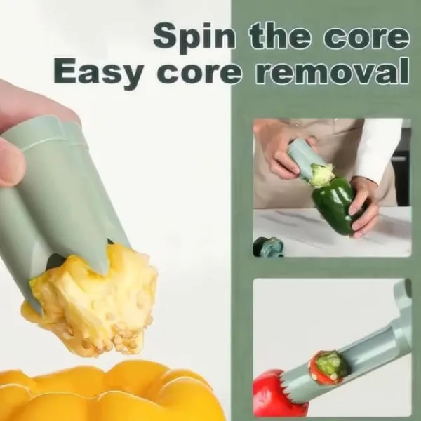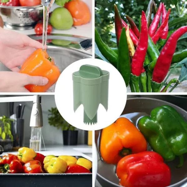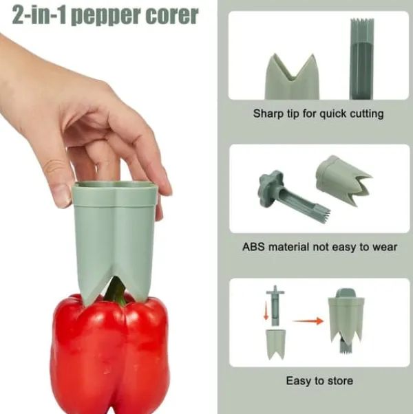 Förenkla ditt matlagning med detta uppgraderade 2-i-1 verktyg som effektivt kärnar ur och skär paprikor i en enda smidig rörelse!