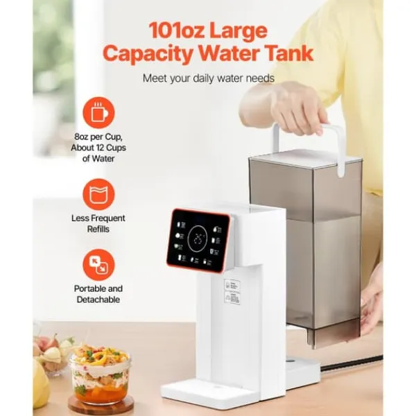 Den 3 liters avtagbara vattentanken gör det enkelt att fylla på och rengöra vår varmvattenberedare för hela familjens vattenbehov. Designen är transparent för enkel övervakning av vattennivåerna.