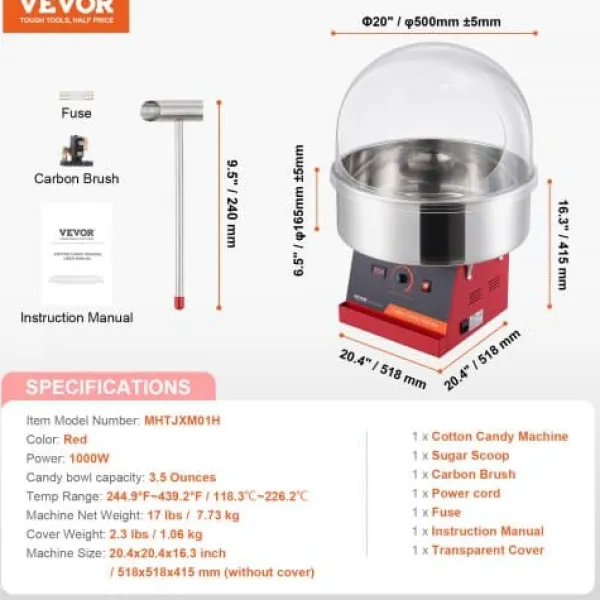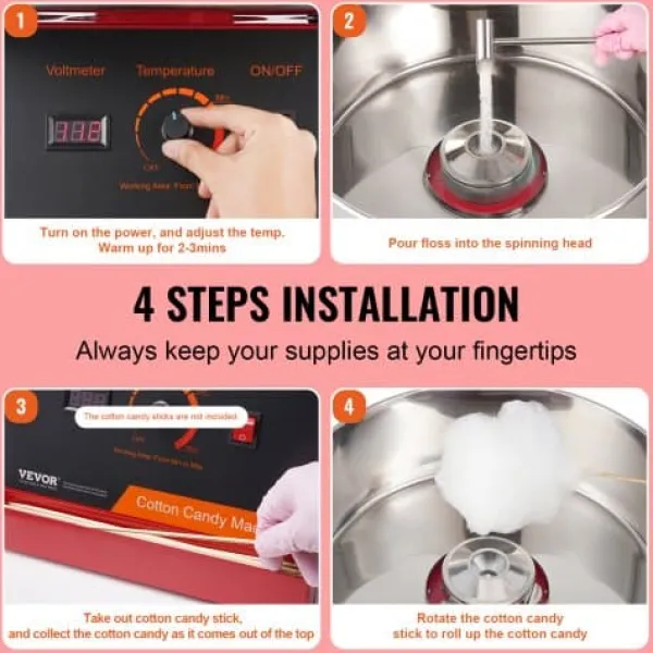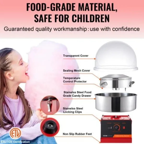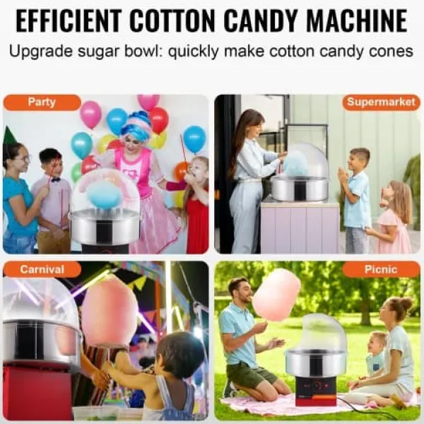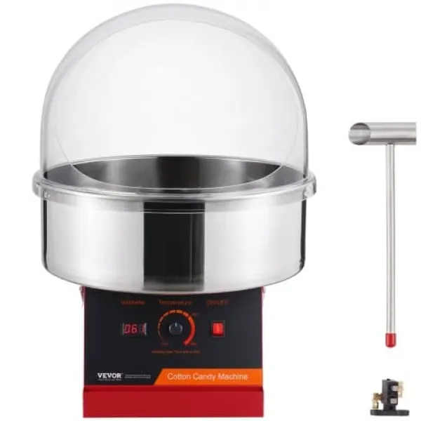 Denna elektriska sockervaddsmaskin är utformad för både kommersiellt och hemmabruk, vilket gör den idealisk för fester, evenemang och familjesammankomster. Med en kraftfull motor och användarvänliga kontroller ger den hög sockervaddsproduktion och låter dig använda olika sockerarter och godissorter för varierande smaker. Dess hållbara konstruktion i rostfritt stål och medföljande lock säkerställer säker och effektiv drift.