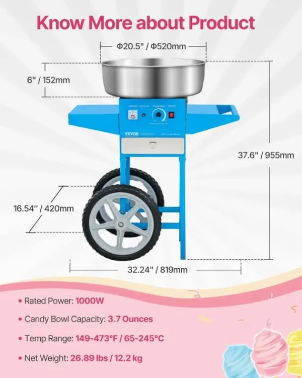 - idealisk för alla evenemang: oavsett om det är en fest, mässa eller festival, ger denna sockervaddsmaskin glädje till gäster i alla åldrar med sina läckra godsaker.