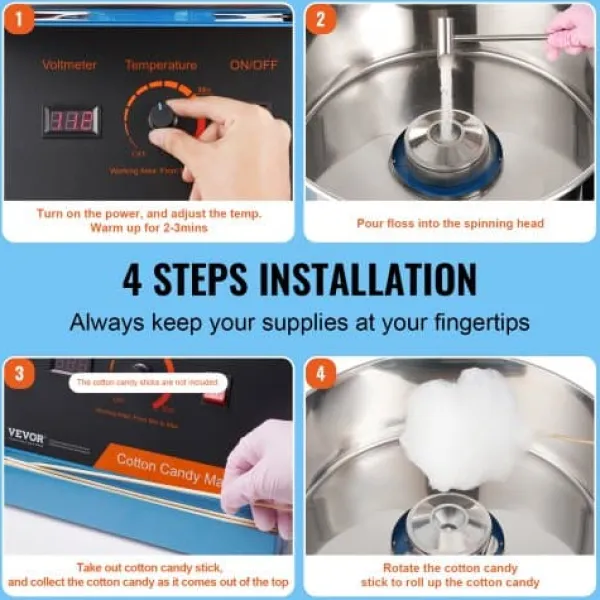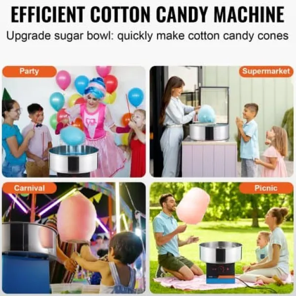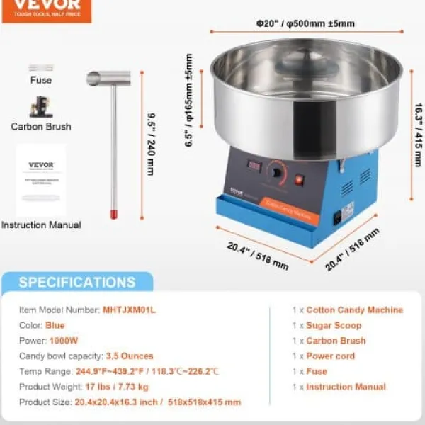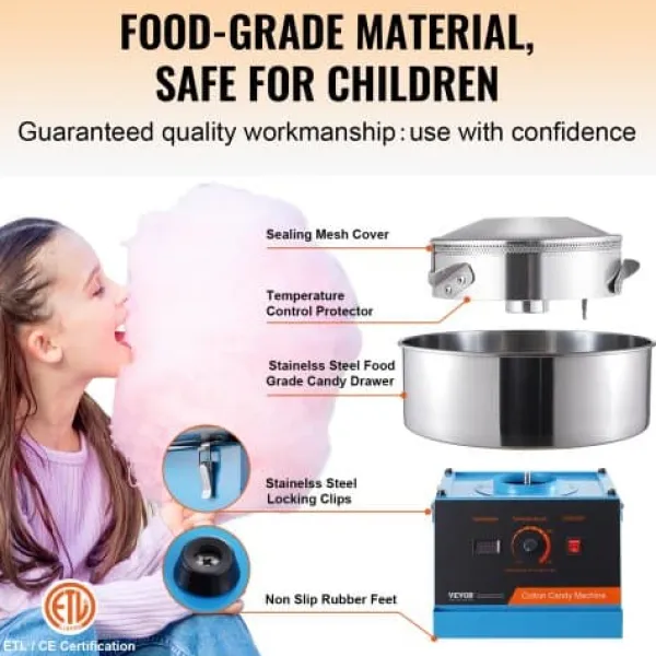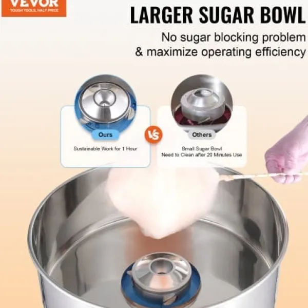 Denna elektriska sockervaddsmaskin är utformad för både hemmabruk och kommersiellt bruk, vilket gör den perfekt för fester, evenemang och familjesammankomster. Med sin kraftfulla motor och användarvänliga kontroller kan du snabbt skapa läcker sockervadd med olika sorters socker eller godis. Den hållbara skålen i rostfritt stål och den medföljande sockerskopan säkerställer enkel användning och rengöring.
