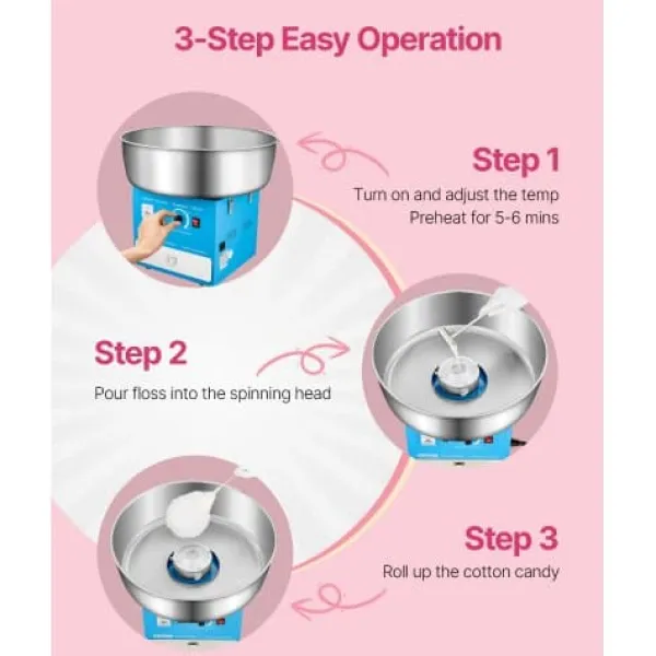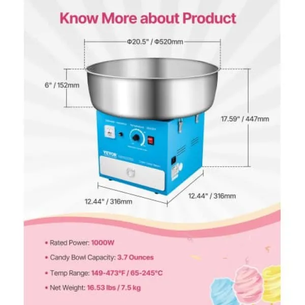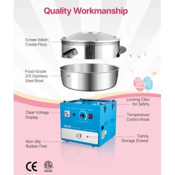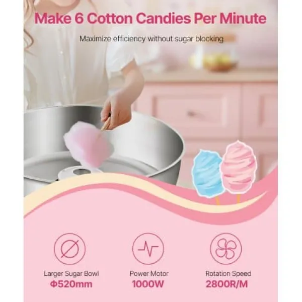 Denna elektriska sockervaddsmaskin är utformad för enkel och effektiv tillverkning av sockervadd, vilket gör den perfekt för familjefester, barnkalas och evenemang. Med användarvänliga kontroller och en rymlig skål i rostfritt stål kan du snabbt och enkelt skapa läcker sockervadd. Dess mångsidiga design gör det möjligt att använda olika typer av socker och godis för personliga godsaker.