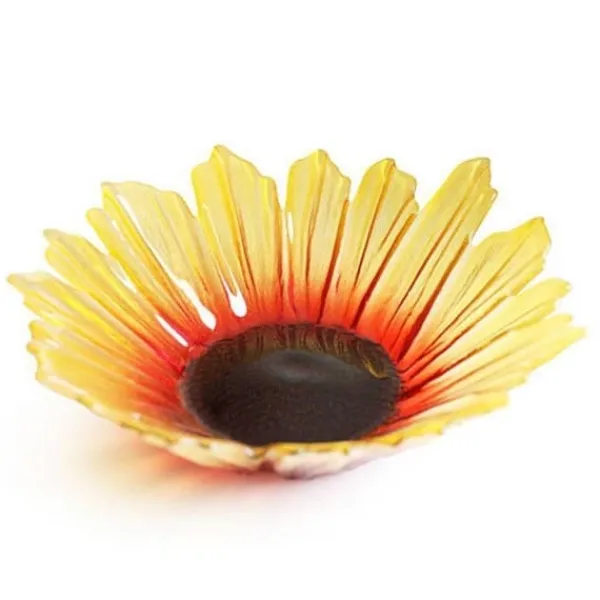 Solros Skål Liten, Gul från MåleråsDen charmiga Solros Skål i gul nyans från Målerås är en hyllning till naturens skönhet. Med sin imponerande diameter på 18 cm är den perfekt för servering av frukt, snacks eller som en dekorativ mittpunkt på bordet.Skålen är tillverkad av högkvalitativ kristall och handgjord i Målerås glasbruk i Småland, vilket gör varje exemplar unikt. Den solgula färgen och det detaljerade reliefmönstret i form av en solros sprider värme och liv i ditt hem.En idealisk gåva eller ett härligt tillskott till din egen inredning – låt den lilla solrosen lysa upp din vardag!