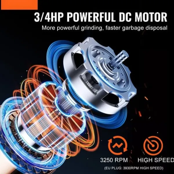 Denna matavfallskvarn erbjuder en effektiv slipning och snabb bortskaffande av matrester. Med en 3/4 HP DC-motor som skapar stadig slipning vid 3930 varv per minut, bryter den effektivt ner matrester, minskar tilltäppningar och ökar kökets effektivitet.