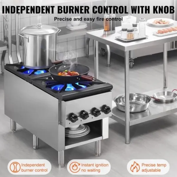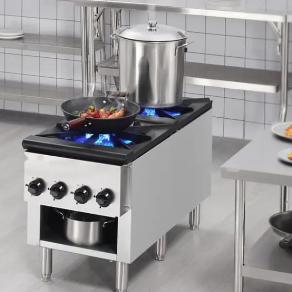 Denna kommersiella gasspis ger 52kw av kraftfull värme för snabb och effektiv matlagning. Med 2 förtjockade gjutjärnsbrännare för stabila lågor, är den perfekt för långvarig matlagning och snabb servering av måltider.