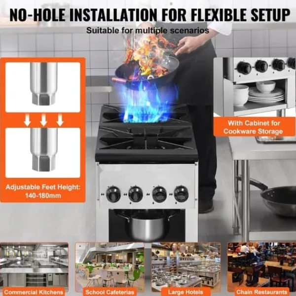 - Kraftfull värme: 52kw kommersiell gasspis av högsta professionell kvalitet för snabb matlagning och läckra måltider.