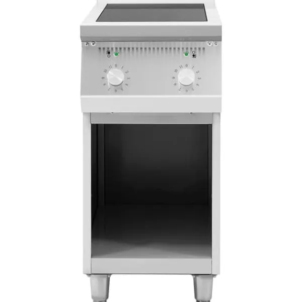Användningen är enkel och intuitiv: Du ställer in den önskade temperaturen upp till max. 260 °C med hjälp av praktiska vridknappar på spisens framsida. De 2 kokplattorna med en diameter på 16-30 cm har en effekt på 8500 W. Detta gör att induktionshällen når sin arbetstemperatur på mycket kort tid. Kokplattorna klarar kastruller och stekpannor som väger 25 kg.