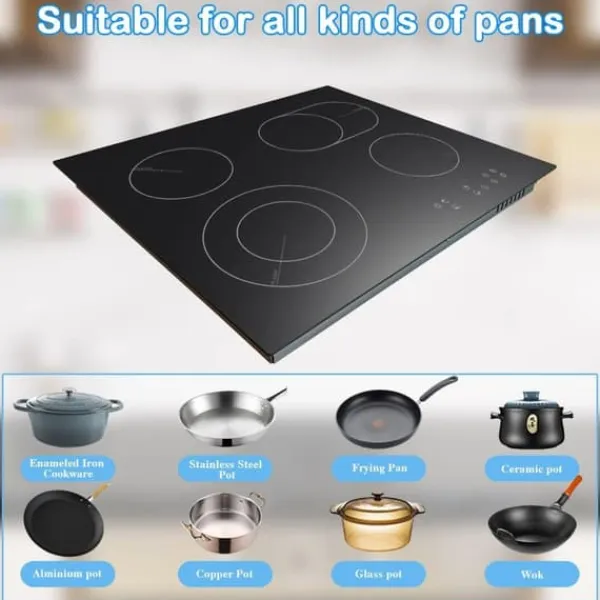 - universell kompatibilitet för kokkärl: denna elektriska keramiska spishäll är lämplig för alla platta kokkärl, vilket ger flexibilitet eftersom du inte behöver köpa specifika pannor för användning.