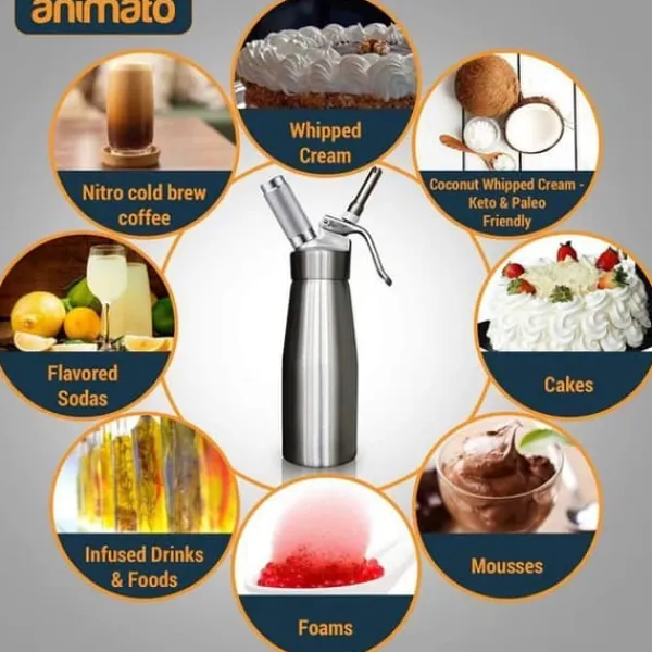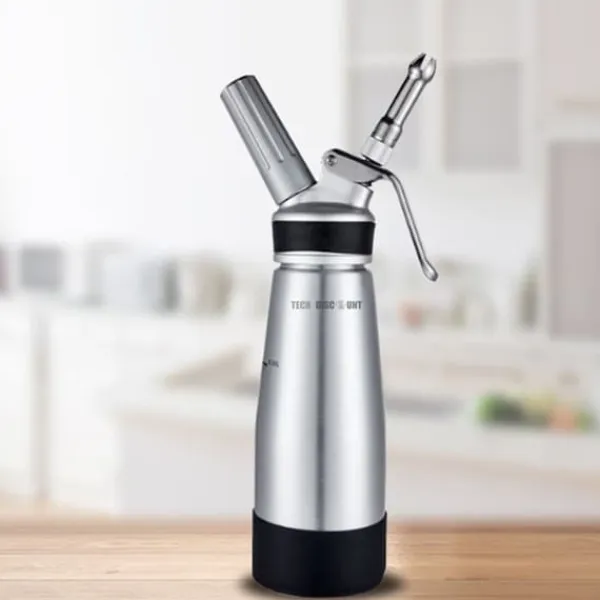 Cream foaming gun – Bygg ditt vackra liv | Hög kvalitet: Denna produkt är tillverkad av högkvalitativ silikon och aluminium, mycket lätt att greppa och mycket estetisk. | Slitstarkt: Denna produkt är robust och hållbar för långvarig användning utan bekymmer. Material: Tillverkad av silikon och aluminium, det kan minska fel som orsakas av handglidning och även förbättra gräddpistolens estetik. Munstycke: Sex olika professionella gräddmunstycken, inklusive plast och rostfritt stål, vilket gör den lätt att använda. Högkvalitativ tillverkning: Med avancerad tillverkning är pistolen inte bara hållbar utan även med den täta och multipla trådlåset, så att den är säker att använda: Spiralflaskestängning – rund och tjock flaskhalsgänga – den är tätt sammanfogad med flasklocket och lossnar inte | Silikonförseglingsring: intern silikonförsegling – grädden spiller inte ut ur flaskan | Flasklockan och pistolkroppen av hög kvalitet: Det finns en nål med ett hål i förbrukningsmaterialets spår, genom vilket förbrukningsmaterialets membran genomborras och trycket i förbrukningsmaterialet sprutas in i pistolen. Rundad och polerad koppbotten för en fin känsla. | Lock i aluminiumlegering: Stark och hållbar lock i aluminiumlegering med tät förslutningsring. | Bekväm inloppsnål: Tillverkad av stark aluminiumlegering | Övriga egenskaper: Specifikation: 500ML – Stil: Modern minimalistisk – Användning: Krämdekoration – Produktmaterial: Aluminiumlegering – Användningsområde: Kaffe/Teelatte/Kommersiellt etc. – Produktspecifikationer: Höjd 27 cm/låg 8 cm. – Produktfunktioner: Non-stick/lätt att rengöra