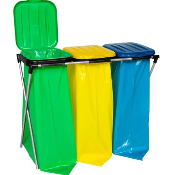 Produkt ID: 1010637 Højkvalitets stativ til 120 liters poser, til affaldsadskillelse. Låg i 3 farver muliggør hurtig og nem sortering af basisaffald. Den solide konstruktion af galvaniserede rør garanterer sikker opbevaring af poserne. Stativet har en ramme, der muliggør hurtig montering og udskiftning af affaldsposen. Egenskaber ved udskillelsesposestativet: – gennemprøvet og solid konstruktion – tilpasset til indsamling og sortering af affald: glas – plastik – papir – galvaniserede rør beskyttet mod korrosion – låget inkluderer en ramme til modtagelse af en 120L affaldspose – leveres adskilt (let og hurtig montering) – velegnet til indendørs og udendørs rum – betræk i 3 farver – gul, blå, grøn letter adskillelse. – stativene passer til poser med en stor kapacitet på 120L (poser kan købes separat i vores butik) Parametre: – udvendige mål efter montering (LxBxH): 91 x 38 x 74 cm – emballagemål, karton (LxBxH): 91 x 41 x 6, 5 cm – vægt af stativ: 3 kg – farver på dæksler: gul, blå, grøn – diameter af galvaniserede konstruktionsrør: 16 mm Sættet indeholder: – tredobbelt stativ til poser til affald og affaldssortering – skruer til selv -montering – poser synlige på billedet er ikke inkluderet i sættet