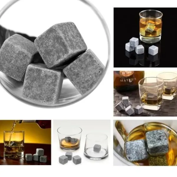 Set med 9 isbitar i täljsten för whisky, återanvändbar och smaklös. Levereras med en förvaringspåse, de kyler dina drycker utan att späda ut dem. Idealiska för en ”whisky on the rocks”, dessa isbitar är perfekta som en originalpresent för alla tillfällen.