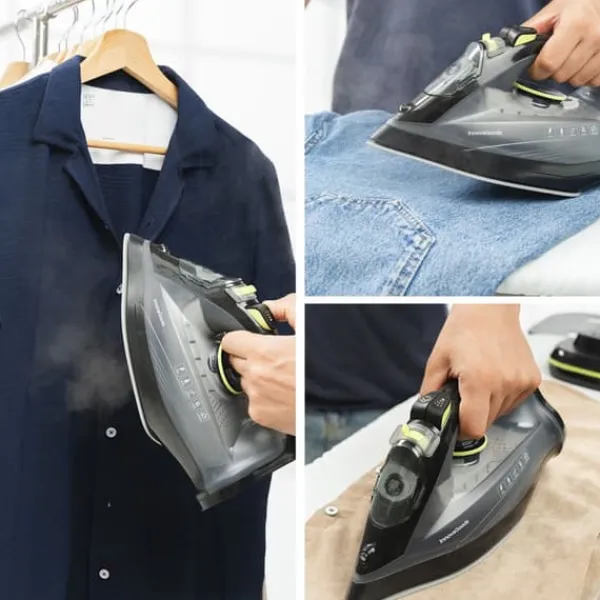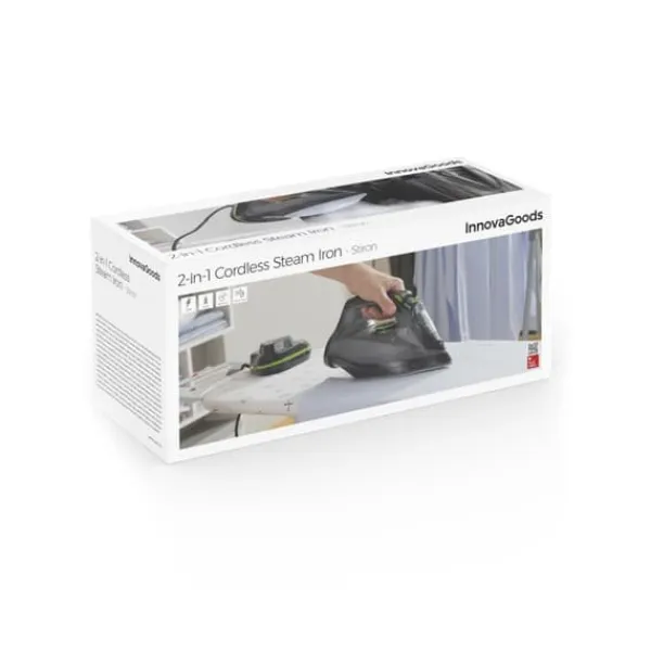 - Trådlös teknik: vårt mångsidiga sladdlösa ångstrykjärn gör strykningen mycket enklare och bekväm tack vare dess innovativa 2-i-1-design. Den kan användas med eller utan sladd, i horisontellt läge eller som ett vertikalt strykjärn, vilket ger utmärk rörelsefrihet.