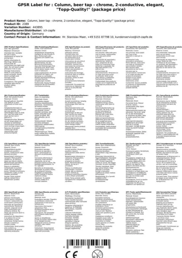 Ölkran – Krom, 2-tråds, elegant, ”toppkvalitet!” (paketpris) Funktioner: •Chrome-version •Ingång 8 mm rostfri •Utlopp 5/8” inklusive matchande ölslang 2 och 5/8 tum skruvanslutning •2x kompensatortryck •2x 20 mm distanshylsa krom •Kylning av ackompanjemang •Efterkylningsslinga, rostsäker •Leverans utan emblem!!! •Top kvalitet! Vår Ölkran i krom är en fantastisk produkt för krävande kunder som vill ge sin bar eller pub en professionell touch. Med två linjer kan du erbjuda dina gäster en mångfald av öl och drycker, samtidigt som du ser till att de alltid serveras vid rätt temperatur. Flaskor och glas i olika storlekar kan enkelt användas tack vare de medföljande distanshylsorna. Denna ölkran är tillverkad av högsta kvalitetsmaterial för att säkerställa långvarig användning och enkel rengöring. Denna dispenseringskolonn har en kromfinish som inte bara är elegant, men också motståndskraftig mot fingeravtryck och vattenfläckar, vilket gör den idealisk för högtrafikerade miljöer. Dina gäster kommer att uppskatta den exceptionella kvaliteten på ölen som serveras från denna Ölkran. Den dubbla raden och kompensatortrycken garanterar att dina gäster alltid får en perfekt servering, samtidigt som den rostfria efterkylningsslingan ser till att ölen hålls vid rätt temperatur till sista droppen. Denna Ölkran i krom passar perfekt för barer, restauranger, pubar och bryggerier. Ett måste för alla som vill garantera den högsta kvaliteten på öl och drycker till sina kunder, samtidigt som de ger ett intryck av professionalism och expertis till sin verksamhet. Möjligheten att servera två olika typer av öl eller drycker samtidigt, kombinerad med den utmärkta kvaliteten av det dispenserade ölet, kommer att öka kundnöjdheten och förbättra din försäljning. Bevisa för dina gäster att du tar deras ölkonsumtion på allvar och omsorgsfullt väljer rätt produkter för att skapa en högklassig upplevelse. Med den medföljande utrustningen och det högkvalitativa materialet kan du vara säker på att detta paketerbjudande kommer att överträffa alla dina förväntningar. Få din Ölkran – Krom, 2-tråds, elegant, ”toppkvalitet!” (paketpris) idag och upptäck skillnaden i både kvalitet och prestanda!
