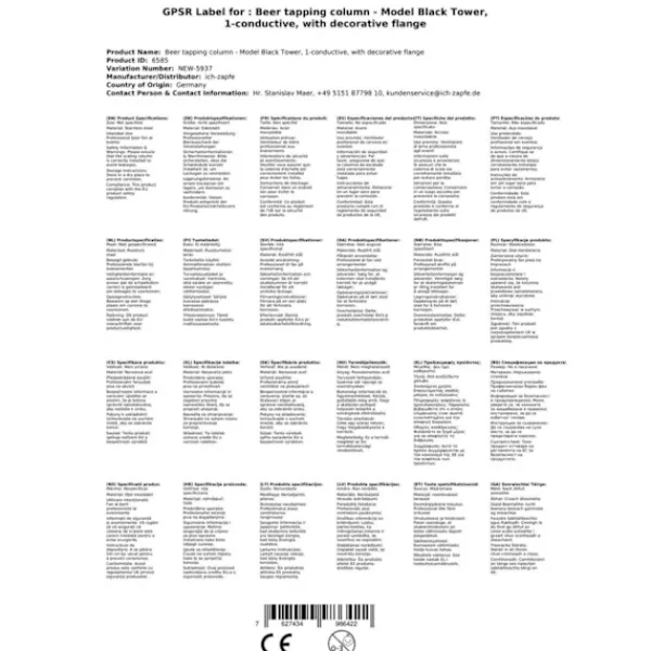 Tapptorn, Öltorn, Ölkran, Ölstolpe, Ölkolumn Modell Black Tower, 1 linie, 1-radig, med dekorativ fläns