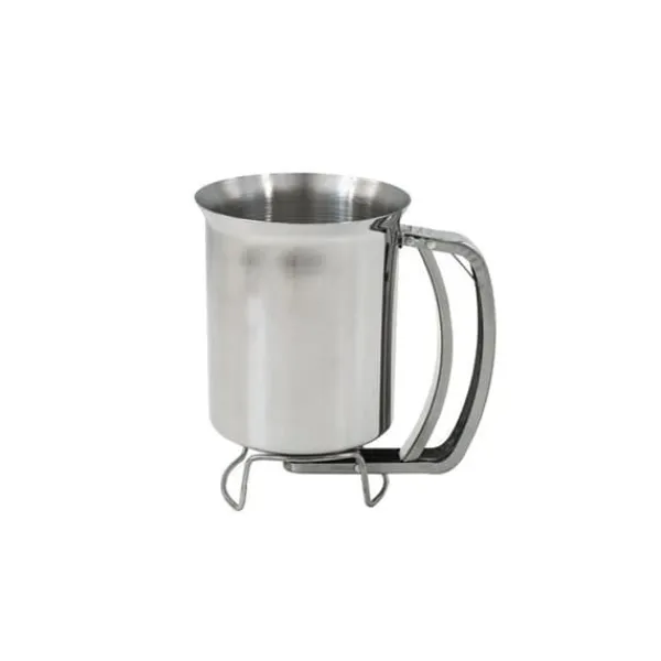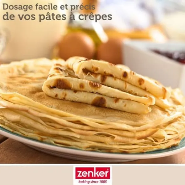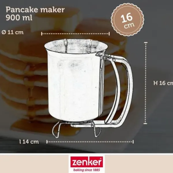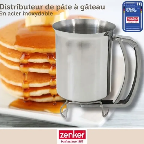 BESKRIVNING: Zenker erbjuder denna bakverksdispenser som gör att du kan hälla utan att spilla, snabbt och med precision, din flytande smet på dina plåtar eller bakformar. DET LILLA +: Denna pannkakmaskin är extremt lättanvänd, du behöver bara trycka på handtaget när du håller den i handen så rinner smeten ut. SAMMANSÄTTNING: I rostfritt stål, vilket är ett hälsosamt, robust material med hög motståndskraft mot värme och korrosion, lätt att rengöra för hand. MÅTT: 16 x 11 x 14 cm; kapacitet 900 ml smet. ANVÄNDNING: För att precisera och dosera smeten till dina crêpes, pannkakor, muffins, cupcakes i sina formar. När du steker crêpes eller pannkakor i din crêpesjärn kan det snabbt hamna smet bredvid pannan; med denna pannkakmaskin kommer det inte längre att vara fallet! Häll helt enkelt din smet i dispensern och placera den över muffinsformen eller pannan. Tryck på mekanismen för att låta rinna den mängd smet du önskar. På så sätt, när du steker dina pannkakor, kommer du inte längre att få smet bredvid pannan och du kan kontrollera mängden smet som hälls så att dina pannkakor får samma diameter. På samma sätt, tack vare detta smarta bakredskap, kommer dina cupcakes och muffins att ha en perfekt presentation i sina små pappersformar! Tillverkad i rostfritt stål, rymmer denna pannkakmaskin upp till 900 ml smet… och den kommer att underlätta ditt bakande!