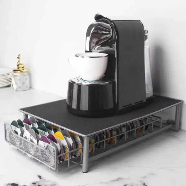 Utrymmesbesparande och praktiskt: Förvaringslådan är utmärkt för att hålla ditt hem eller kontor snyggt och städat. Den är perfekt att ställa vart du än har din kaffemaskin för enkel tillgång till kaffekapslarna.