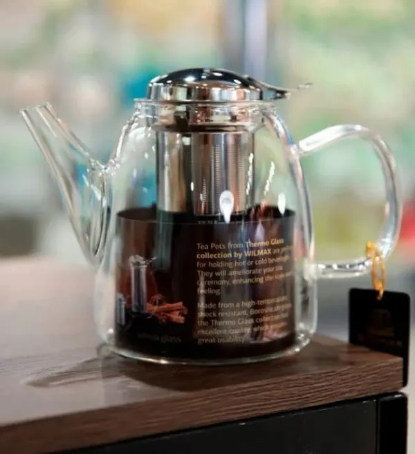 Den värmebeständiga vattenkokaren WILMAX från Thermo glas-kollektionen är tillverkad av speciellt värmebeständigt glas som tål höga temperaturer och direkt kontakt med eld. Vattenkokaren kan koka vatten direkt på spisen (lämplig för gas- eller elspisar). Vattenkokaren är också utrustad med ett filter i rostfritt stål som förhindrar att te kommer ner i koppen.