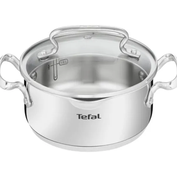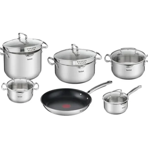 Set med 11 delar, set som inkluderar gryta 16 cm med lock, kokkärl 18, 20, 24 cm med lock, kastrull 22 cm med lock, stekpanna 26 cm, material rostfritt stål, non-stick yta, inre non-stick yta på stekpannan Titanium 2x, temperaturindikator Thermo-Signal, kompatibel med typer av uppvärmning: induktion, gas, keramik, elektricitet, kan användas i ugn (utan lock), går att diska i diskmaskin, måttmarkeringar.