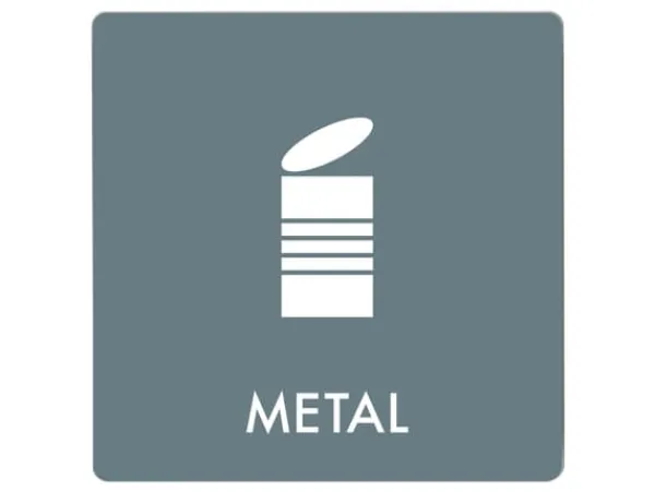 Skilt affaldspiktogram METAL 12×12 cm, aluminium, grå/hvid