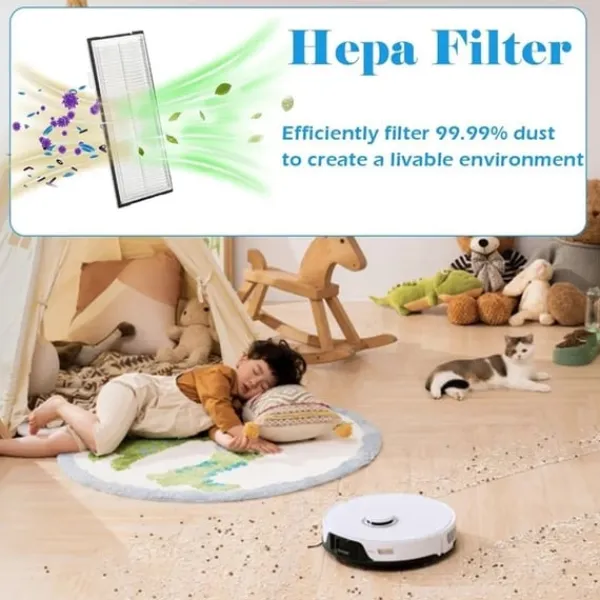 Satsen innehåller huvudborstar med dubbla rullar som ger kraftfullt sug och minskar trassel från hår. Moppdynorna i mikrofiber har god absorptionsförmåga och jobbar tillsammans med en dubbel vibrerande rengöringsmodul för att avlägsna smuts effektivt. HEPA-filtren fångar upp 99,99 % av damm och allergener, vilket förbättrar inomhusluften markant. Regelbundet underhåll och byte av dessa delar gör stor skillnad för både städresultat och hållbarhet.