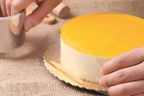 Högkvalitativ, tjock (100 mikron) kantfolie används för att skydda sidorna på kakor, desserter, tårtor och andra delikatesser. Folien gör det lättare att ta ut produkter från kanter och formar och skyddar dem från att torka ut.