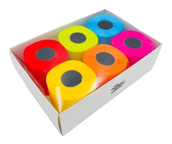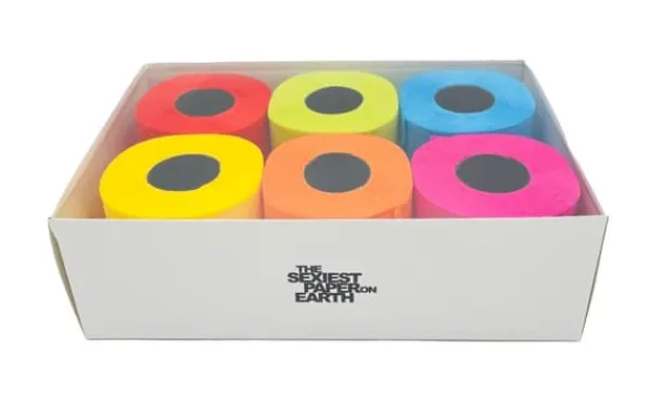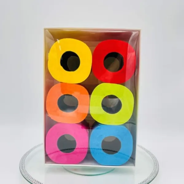 Renova Nº6 toalettpapper Sex trendiga färger i ett i en exklusiv presentförpackning – en ask med 6 rullar med en transparent nyans. Det finns blått, orange, limegrönt, rött, fuchsia och gult. Renova Nº6 är en bra presentidé, till exempel för en inflyttningsfest, som kommer att överraska alla. Original, utmärkt kvalitet, i levande färger. Premiumförpackning 6 rullar (olika färger) Mycket mjuk och absorberande Skönt doftande Råvara av första klass Fläckar inte kroppen Dermatologiskt testad 16,1 m per rulle 140 ark per rulle 3-lagers kartongmått – 32,1 x 21,3 x 10,1 cm EAN 1301 kod: 501 cm EAN 1301 Tillverkningsland: Portugal