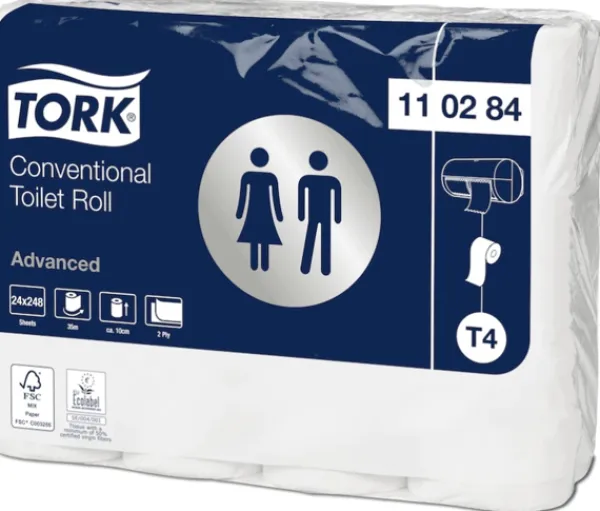 Toiletpapir Tork T4 Advanced 2-lags 34,7 m hvid – (24 ruller pr. karton)