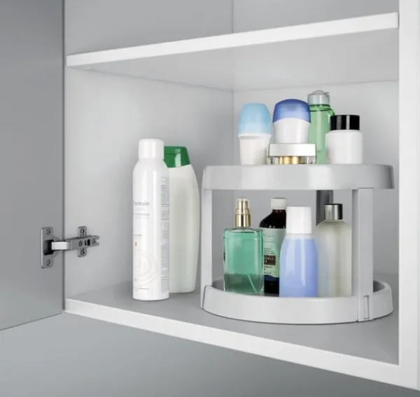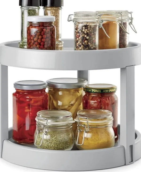 Nya Metaltex Giro 2 är ett praktiskt kryddställ: tack vare det roterande brickan hittar du dina kryddor blixtsnabbt. Örter, olja och andra köksredskap får enkelt plats på det, och det sparar också plats i ditt skåp. Det roterande brickan har två nivåer, vilket ger gott om plats för burkar, såser och flaskor.