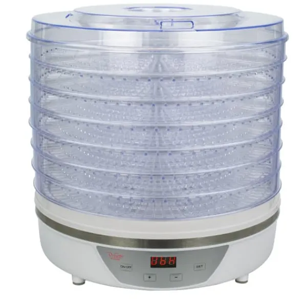 , vilket möjliggör torkning av ett större antal produkter samtidigt. Genomskinliga brickor gör att du kontinuerligt kan övervaka torkningsprocessen utan att behöva ta bort dem, vilket minimerar värmeförlusten. Den tydliga