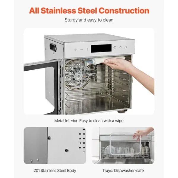 - **Hållbar och enkel att rengöra:** Tillverkad av hållbart rostfritt stål, är denna mattorkningsmaskin inte bara tålig och rostbeständig utan också lätt att hålla ren. Den släta metallinsidan och diskmaskintåliga brickorna gör underhållet enkelt och bekymmersfritt.