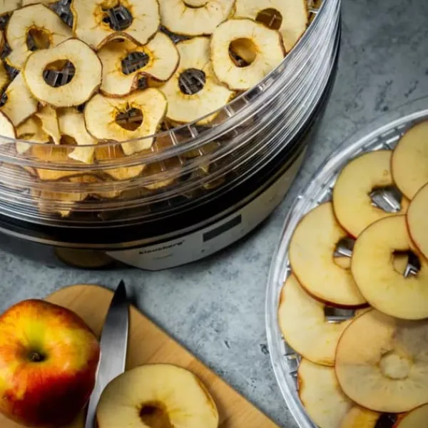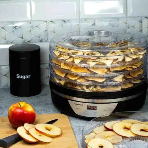 En viktig enhet i varje modernt kök, enkel och säker att använda. Torkar snabbt och effektivt svamp, örter, frukt och grönsaker. Tack vare noggrant utvecklade torkningsparametrar gör det det möjligt att bevara produkternas närings- och smakvärden. Flerskiktsarrangemang av siktar ökar torkningseffektiviteten. Funktioner: – 5 avtagbara, stapelbara mattorkarbrickor. – Livsmedel PP/AS; BPA-fritt, rostfritt stål – Lätt att tvätta torkbrickor – Elektriskt torkställ i flera nivåer som bevarar en mängd olika livsmedel. – Lätt att använda, med enkel uppstart – intuitiv knapp. – Val av torkning med ett klick. – Justerbar tid 1-48 timmar och temperaturinställning 35-68 grader, gör att du kan torka en mängd olika livsmedel vid rätt temperatur. – Snabb, torr mat på timmar, inte dagar. Ett enkelt sätt att förbereda läckra, hälsosamma och naturliga mellanmål som bananchips, fruktrullar och beef jerky. – LED digital displayskärm – Strömförsörjning: 220-240V 50/60HZ – Effekt: 350W – Storlek: ∅33 x 27cm Vad är torkning? Torkning är helt enkelt uttorkning. Tack vare att cirka 70 % av vattnet i frukt och grönsaker avdunstar, behåller produkterna fortfarande sin hållbarhet. Som ett resultat av vattenavdunstning koncentreras ingredienserna som finns i frukt och grönsaker, varför bland annat torkade produkter alltid är sötare än färska. Hälsa. Om vi torkar våra sommarskördar ordentligt kommer de att bevara alla bioelement, tanniner, syror och karoten till fullo och, vilket är mycket viktigt för att våra tarmar ska fungera, fibrer och pektiner. Deras smak och lukt kommer också att förbli oförändrade.