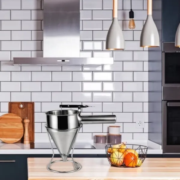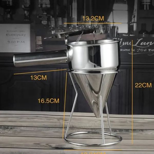 Vi har uppmärksammat varje detalj i vår tratt. Den kommer med ett tjockt svetsat handtag, vilket ger ett säkert och bekvämt grepp. Dessutom säkerställer det högkvalitativa rostfria stålfästet stabilitet och hållbarhet, vilket gör den lämplig för användning på alla bänkskivor.