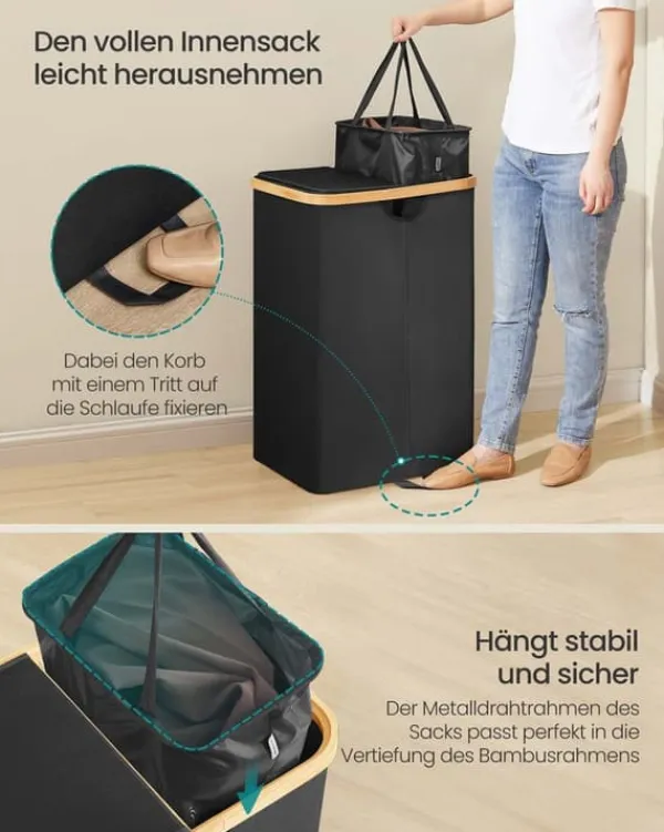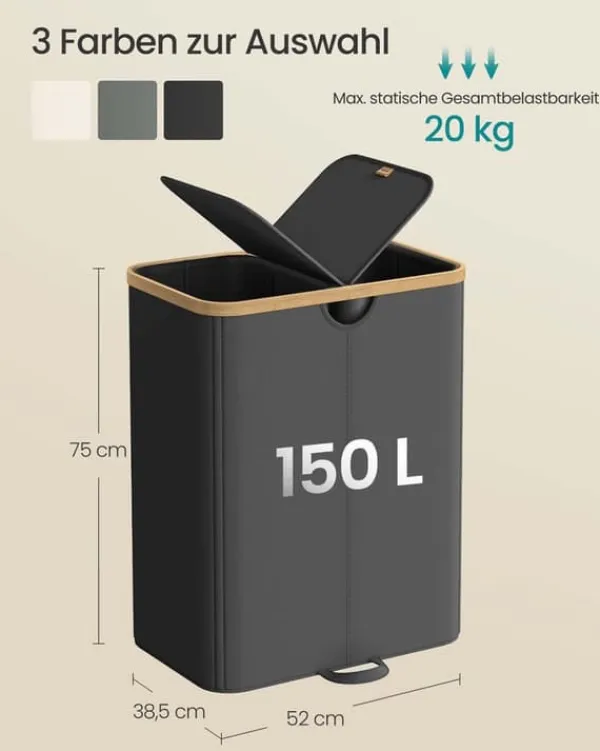 Denna tvättsorterare har två fack för effektiv sortering och organisering av tvätt. Den är tillverkad av hållbara material och inkluderar avtagbara tvättpåsar, vilket gör den idealisk för användning i tvättstugor, sovrum eller vardagsrum.