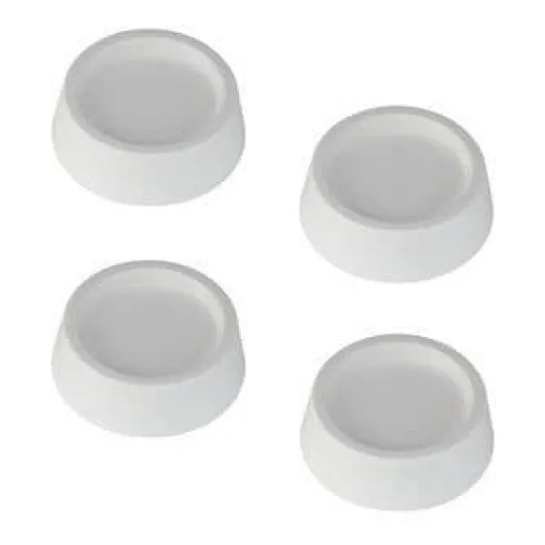 WPRO SKA202 antivibrationsdynor dämpar och förhindrar vibrationer från hushållsapparater, skyddar parkett- och klinkergolv och stabiliserar tvättmaskiner. Med en anti-UV-behandling för att förhindra gulning, är dessa glidar anpassningsbara till ett stort antal hushållsapparater. Diameter: 4,5 cm. 2 års garanti.