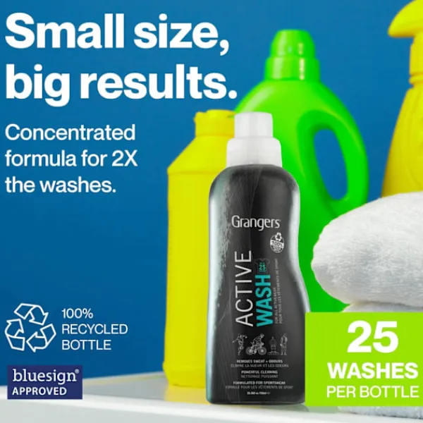 Grangers Active Wash är ett högpresterande tvättmedel speciellt utvecklat för att ta bort smuts, svett och dålig lukt från aktivt klädmaterial utan att försämra dess tekniska egenskaper. Active Wash rengör på djupet, fräschar upp och återställer plaggets fukttransporterande förmåga så att du alltid känner dig fräsch och bekväm, pass efter pass. Perfekt för funktionsplagg, sportkläder och träningsutrustning.