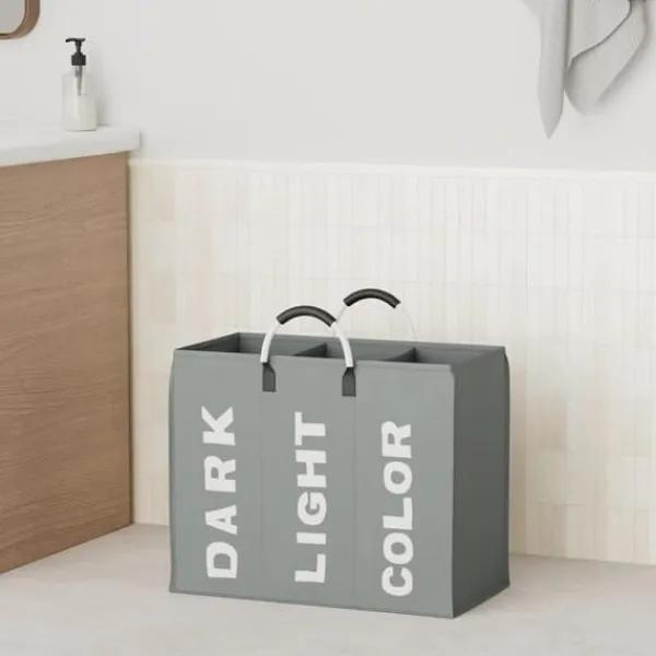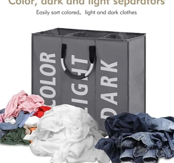 Praktisk 3-sektionsdesign – Håll ljusa, mörka och färgade kläder åtskilda i samma korg. Spara tid och gör tvättdagen mer effektiv.
