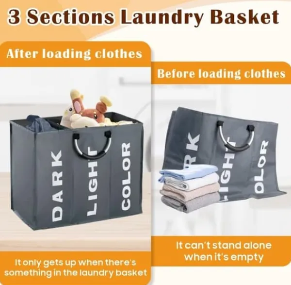 Tvättkorg med 3 Fack – Vattentät & Hopfällbar Tvättsorterare med Aluminiumhandtag