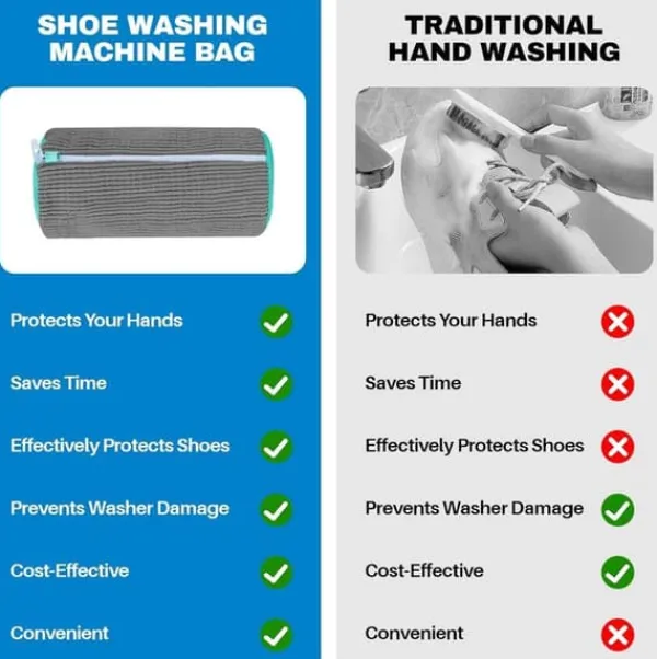 Utrustad med tusentals fluffiga mikrofibertrådar och ett smart nätmönster rengör tvättpåsen skonsamt men effektivt i alla riktningar. Den djuprengör skorna utan att du behöver skrubba och skyddar samtidigt mot slitage under maskintvätt. Perfekt för sneakers, vardagsskor och barnskor.