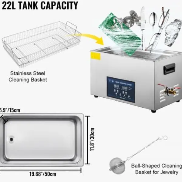 Ultraljudsrengörare 53x33x27,5 cm 22L rostfritt stål