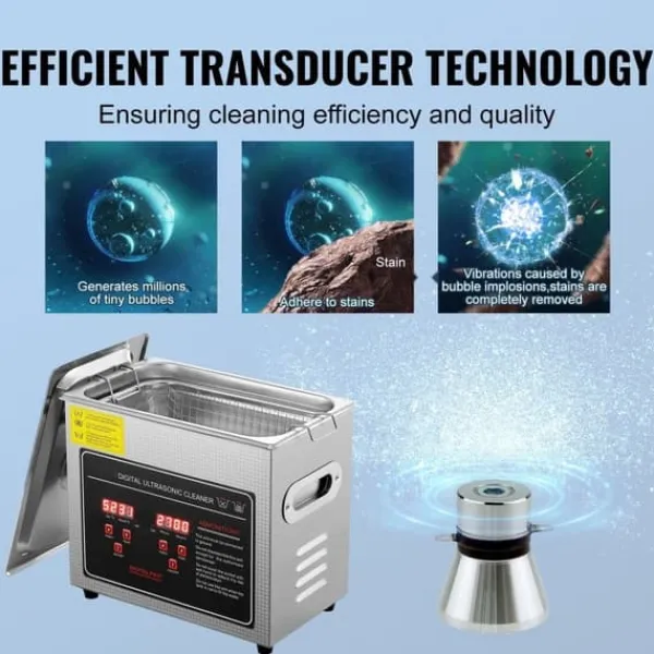 Utökad frekvens på 33 till 40 kHz: Med sin kraftfulla ultraljudsfrekvens på 33 till 40 kHz och dubbla transduktorer är vår ultraljudsrengörare perfekt för att rengöra föremål med komplexa former, hål eller envisa fläckar. Det är det ideala valet för att rengöra objekt med fina detaljer, ömtåliga gravyrer eller dolda springor, så att ingen manuell skrubbning krävs.
