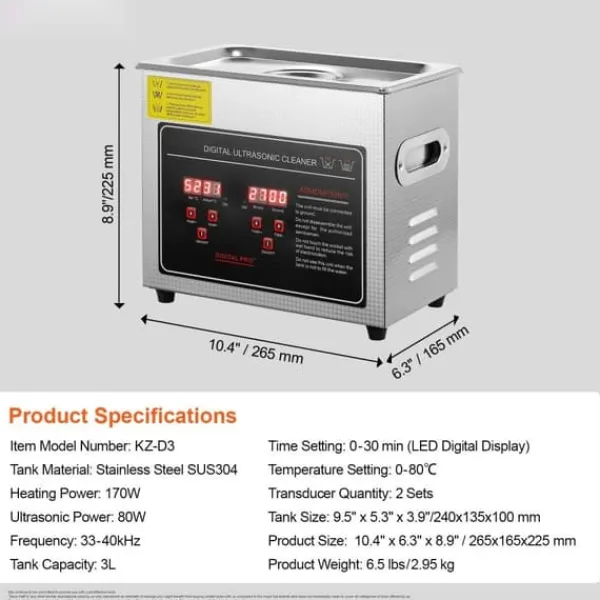 Byggd för evigheten: Vår ultraljudsrengörare, tillverkad av robust rostfritt stål 304, har ett ljuddämpande lock och praktiska handtag på båda sidor för enkel transport och underhåll. Dess robusta konstruktion säkerställer lång livslängd och rengöring är en barnlek.