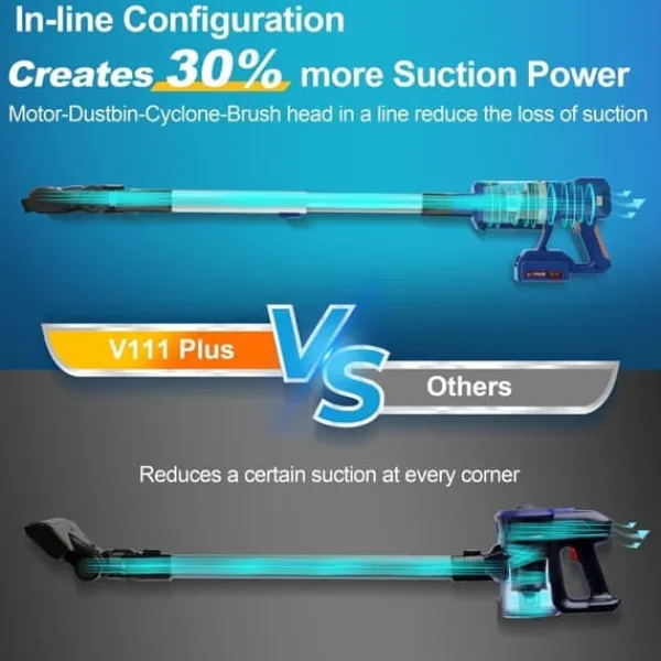 Kraftfull borstlös motor: UMLo V11 har en 300 W motor med upp till 30 kPa sugkraft – tar effektivt bort damm, smuts och djurhår från mattor, hårda golv och svåråtkomliga ytor.