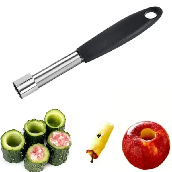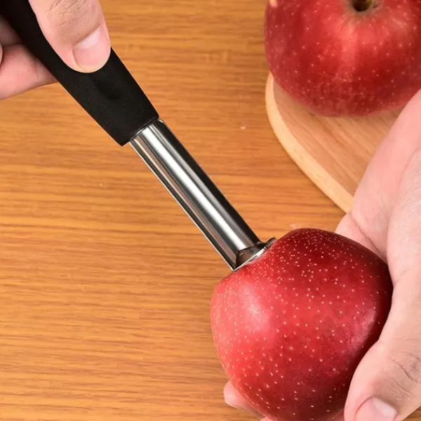 Den robusta designen, tillverkad av rostfritt stål, är motståndskraftig mot rost och håller för daglig användning. Med sin enkla hantering kan fruktkärnor avlägsnas precist och effektivt utan krångel. Perfekt för att skapa fruktsallader, bento-lådor eller dekorativa uppläggningar. Dessutom är den lätt att rengöra i diskmaskin, vilket gör den till ett oumbärligt tillskott i köket. Ett fantastiskt val för alla som älskar praktiska och stilfulla köksredskap.