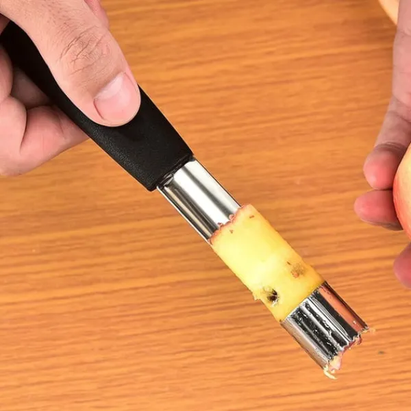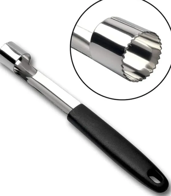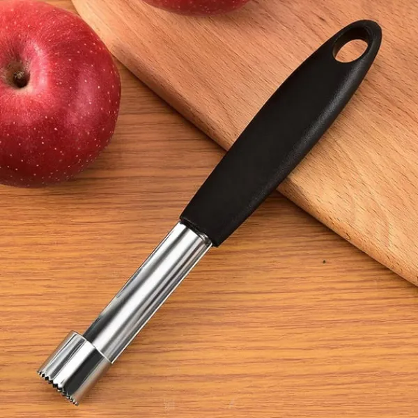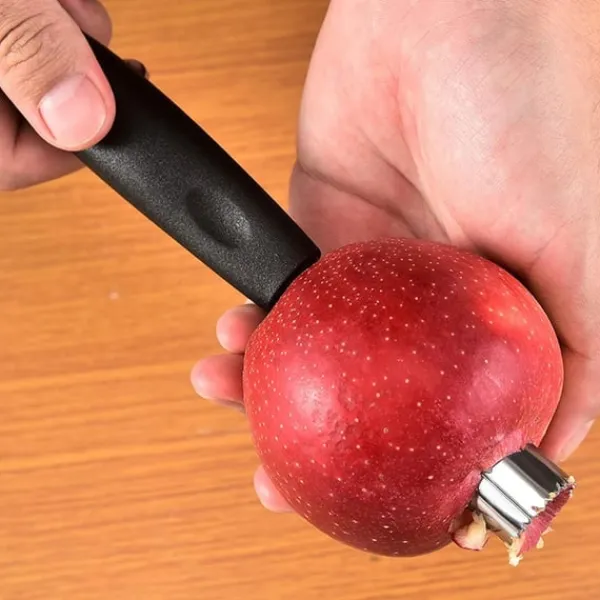 En praktisk urkärnare som gör fruktberedningen snabb och smidig. Med sitt ergonomiska handtag och vasst tandat blad tar den enkelt bort kärnor från äpplen, päron och annan frukt på bara några sekunder. Perfekt både i hemmet och på restauranger, där den hjälper till att spara tid och minska svinn. Ett snyggt och funktionellt verktyg som förhöjer köksupplevelsen.
