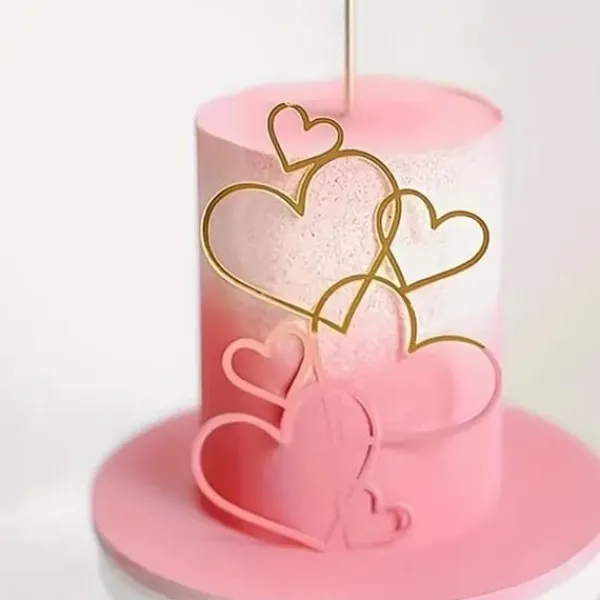 Topper för att dekorera tårtan på sidan, dekorerad med ett vackert motiv av gyllene hjärtan. Denna produkt är perfekt för att dekorera tårtor, bakverk och andra bakverk för speciella tillfällen, vilket ger dem ett unikt och imponerande utseende. Varje konfektyrälskare kommer att uppskatta dess noggranna hantverk och eleganta design, vilket gör varje bakad produkt ännu mer speciell.
