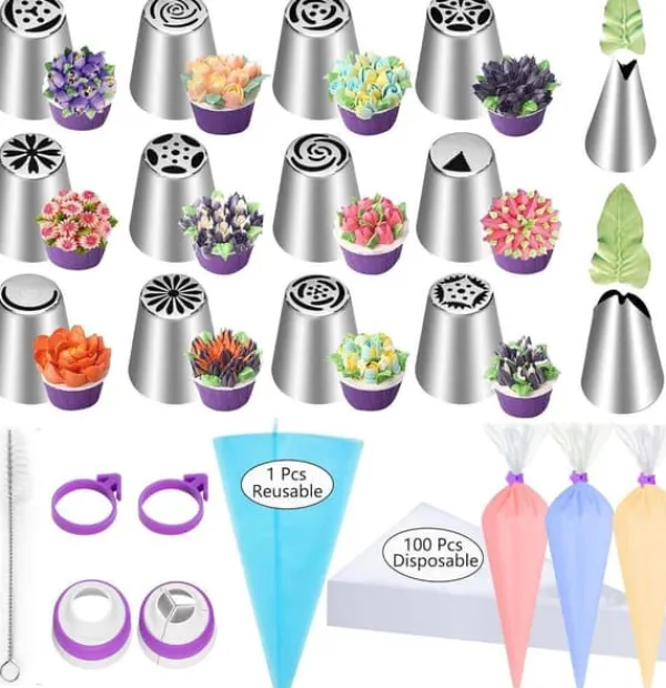 Innehåller återanvändbar spritspåse, 14 munstycken och en koppling för enkel användning och variation.