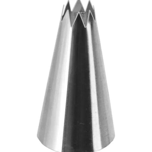 Denna stjärnformade stålspets är extremt användbar för att skapa olika mönster och dekorationer på kakor, tårtor och cupcakes. Den möjliggör enkel och effektiv dekorering av bakverk, vilket ger ett unikt utseende och karaktär. Spetsen har en distinkt form som gör att du kan skapa stjärnformade dekorationer och olika mönster. Spetsen är lämplig för både professionella konditorer och bakamatörer. Originalprodukt från det tjeckiska märket Orion. Tillverkad enligt europeiska standarder.
