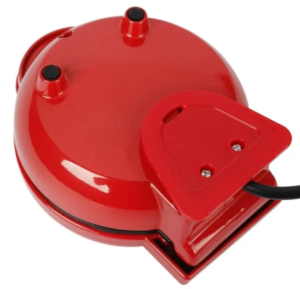 Våffeljärnet är i en snygg röd färg och gräddningsytan består av en PFAS-fri beläggning som bra för både människa och miljö. Undertill finns anti-glidfötter