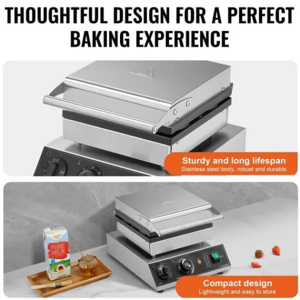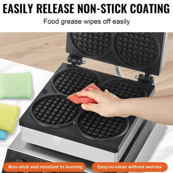 Denna non-stick våffelmaskin är perfekt för matlagning och sammankomster med vänner. Lägg till dekorationer som choklad och godis för att förstärka smaken av varma våfflor. Dessutom passar den perfekt för kaféer och exklusiva restauranger. Perfekt tillagade våfflor väntar på dig.